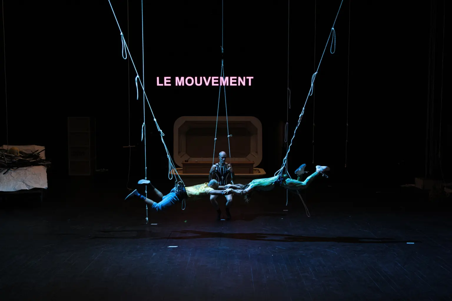 Le dramaturge israélien se risque à présenter le meurtre d’un Palestinien autiste par un soldat israélien à travers les yeux de trois comédiens-oiseaux. La pirouette est ambitieuse, et je salue la démarche. Pour être sincère, j’ai absolument haï les longueurs du spectacle — comblées avec des chamailleries dans une caricature de langage populaire qui amusent les premières fois et insupportent les suivantes —, le personnage du martinet — qui m’a semblé un ressort comique particulièrement lourd et paresseux — et, surtout, le fait que le spectacle ne s’arrête pas là où il aurait dû, c’est-à-dire après la dispute entre le bulbut et la drara sur le témoignage du soldat X — tout ce qui suivait était de trop, à mon goût. Cela étant dit, la désinvolture du texte m’a plu, la mise en scène des oiseaux en vol aussi, et certaines scènes du spectacle m’ont véritablement bouleversé.